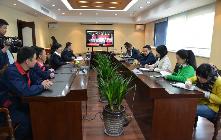 2015年4月23日下午,溫州市總工會副主席程龍鳳一行來到天信調(diào)研工會工作,蒼南縣總工會主席曾玲艷、公司副總裁高小琴、工會主席顏勐敏等陪同調(diào)研。