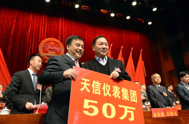 五水共治,各企業(yè)家勇?lián)蓬^兵。公司總裁范叔沙作為縣人大代表和民營企業(yè)家代表公司現(xiàn)場捐贈50萬元,為建設山青水秀家鄉(xiāng)貢獻了一份力量。